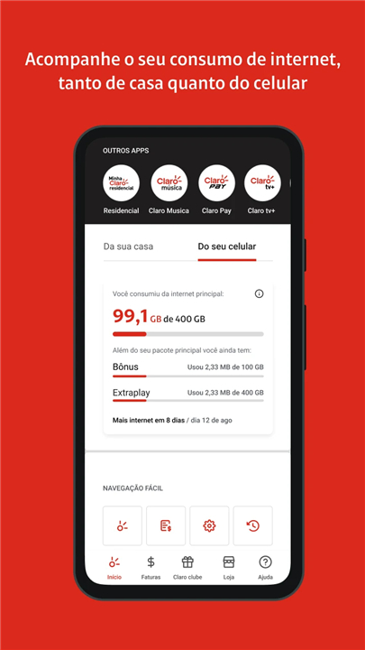 • Browsing within the Minha Claro app is free of data charges when using Claro’s mobile network, giving you limitless access to manage your services anytime.