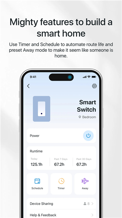 • Scheduling: Program specific times for your devices to turn on or off, helping you maintain routines and save energy.