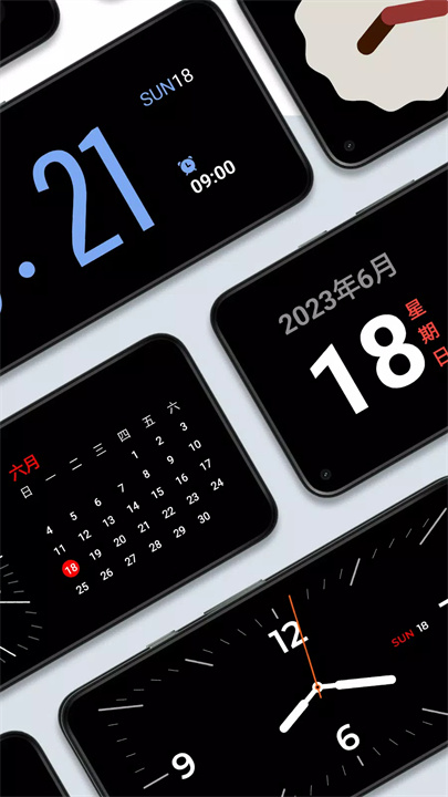 嗒嗒时钟提供多种时钟样式,包括翻页时钟、数码时钟、模拟时钟、太阳时钟、日历时钟等,每一款都充满设计感,满足你不同的使用需求。