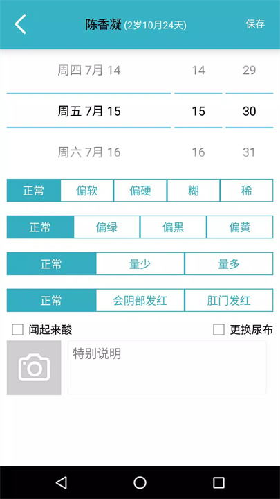 - 记录孩子的排便情况,包括是否正常,是否有异常,帮助家长及时发现问题。