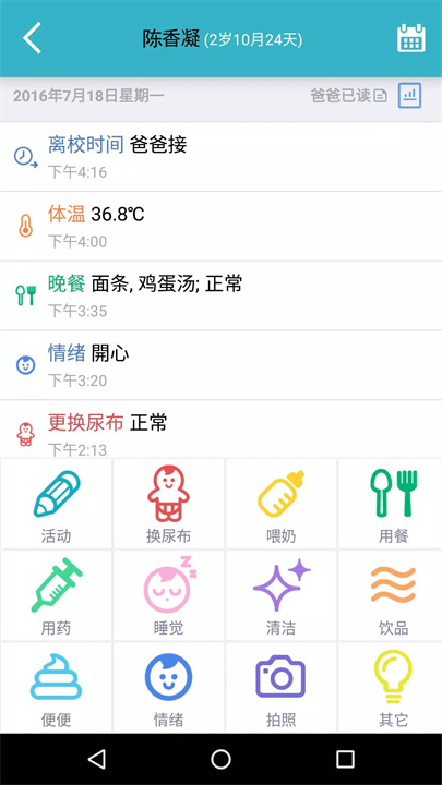 - 老师通过应用将孩子的日常记录同步给家长,让家长随时掌握孩子的健康与生活状态。