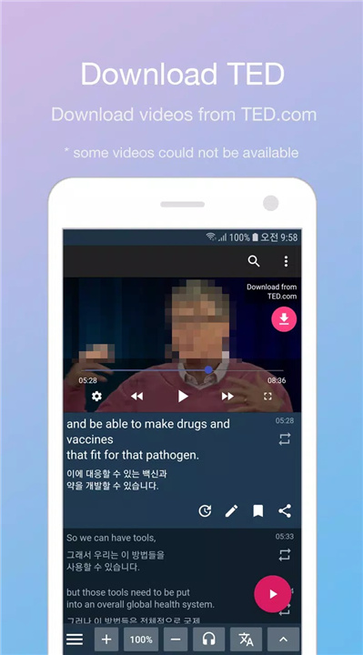 • 支持书签与共享字幕功能,让您与他人分享学习心得与成果。