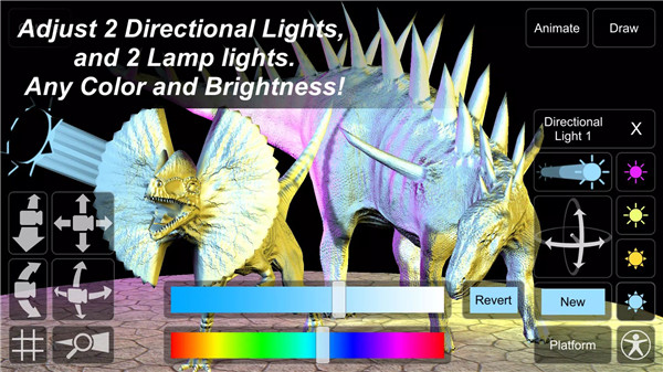 New lamp lights illuminate your scene, enhancing the overall atmosphere of your artwork. Choose custom backgrounds from your gallery to complement your dinosaurs.