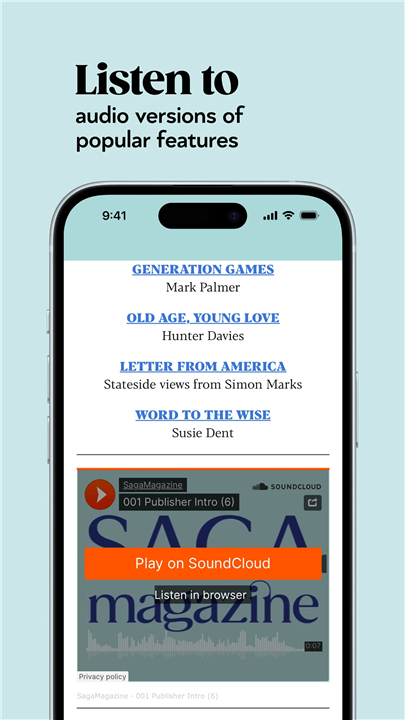 • Simply download the app free of charge, then log in using your My Saga account to enjoy a wealth of articles, features, interviews and more—delivered straight to your fingertips.