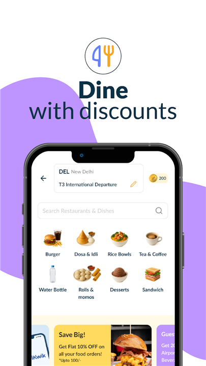 • Pre-order meals from top restaurants and choose terminal delivery or quick pickup.