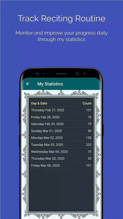 Track your progress with the My Statistics feature, which provides insight into your daily recitation patterns and overall history. You can view a summary of your recitations on the home screen, helping you stay motivated and engaged in your spiritual journey.