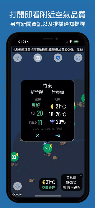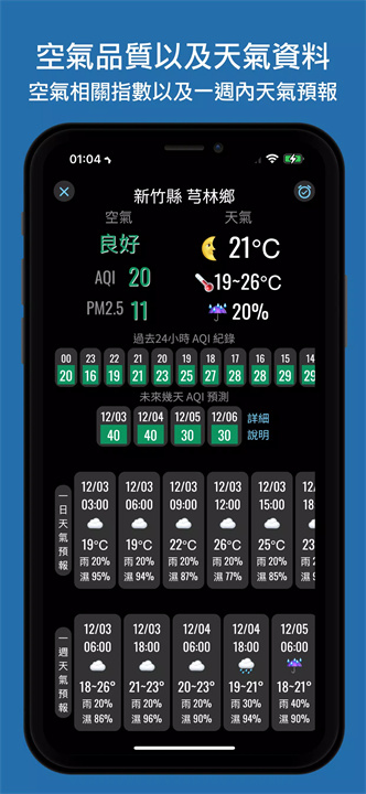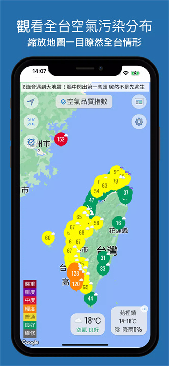 [空氣污染警報]是一款贴心的空气质量与天气提醒工具。通过连接环保署和气象局的数据,实时提供空气质量指数(AQI)及站点天气信息。用户可设定关注站点,当空气变差或变好时,收到即时推播通知。首页直观显示附近站点数据,还支持查看地图模式、切换气温和降雨等信息。应用还提供早晚天气预报、一周气象趋势以及特报提醒,帮助用户随时掌握环境变化,守护健康生活。