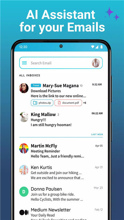 Stop switching between different email apps! AI Mail Home brings all your Gmail, Yahoo, Outlook, Hotmail, and AOL accounts into one simple, easy-to-navigate inbox. All your emails will appear in one place, giving you a comprehensive view without the headache of toggling between multiple apps.