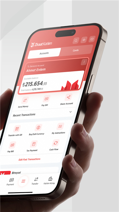 • Ziraat Katılım Mobil has been completely redesigned to deliver a modern, fast and reliable banking experience.