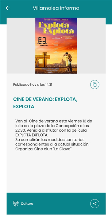 • Announcements regarding cultural, educational, and sports events organized in Villamalea.