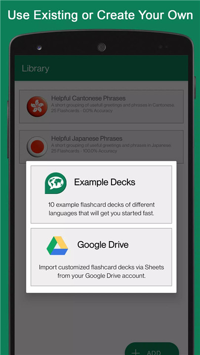 With Lusil Voice Flashcards, you have the ability to create and personalize your own flashcard decks with ease using Google Sheets from your Google Drive. This feature allows you to tailor your learning experience to your specific needs, whether it's vocabulary, phrases, or entire sentences.