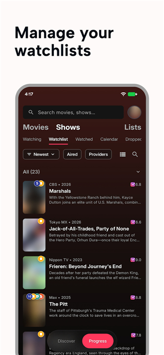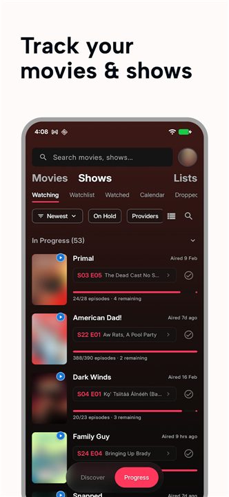 Q: Can I use the app to track my progress through long TV series with many seasons?