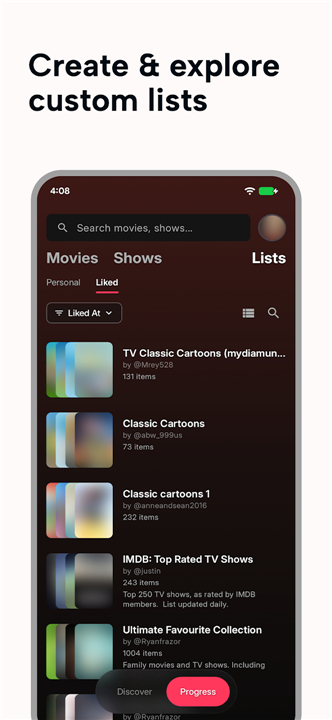 • Create unlimited custom lists to organize your media by genre, priority, or personal milestones.