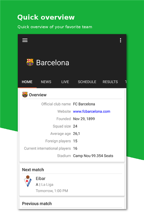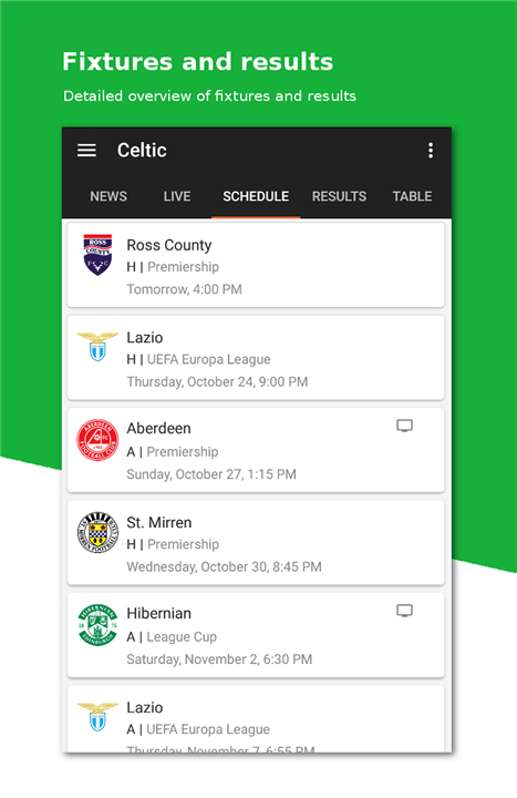 - Keep up with standings, upcoming matches, and results across multiple competitions.
