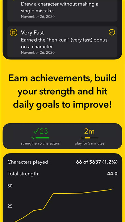 With Chinese Writer, characters fall from the top of the screen, and your task is to tap them and draw them correctly to score points. But beware, if they reach the bottom, it's game over! However, the learning doesn't stop there. You can review everything you've learned, complete with stroke order diagrams and practice at your own pace. Plus, characters you struggle with the most are highlighted, helping you focus on areas that need improvement.