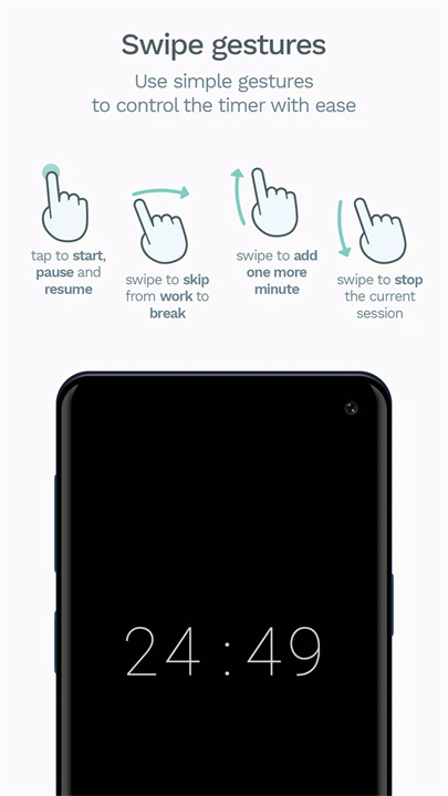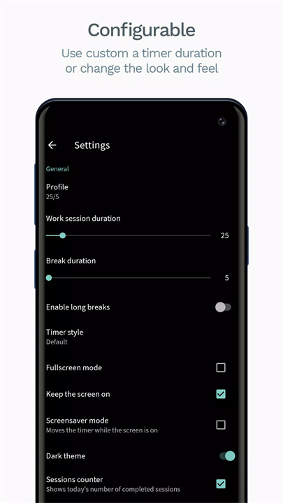 Goodtime支持屏幕常亮和沉浸式全屏模式,确保工作时不会因为手机自动熄屏而中断。而且全屏模式减少了其他应用的干扰,增强专注感。