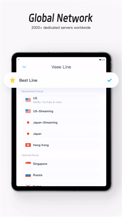 Veee+ VPN支持高速线路,完美解锁奈飞等流媒体平台,让您随时享受高清流畅的视听盛宴,无需担心地区限制。