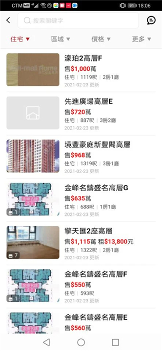 A: MaliMaliHome Macau lets you search for residential flats, houses, villas, commercial units, and industrial spaces for sale or rent. You can switch between sale and rental modes with a single tap, then refine your search by district, price range, number of bedrooms, floor area, and more.