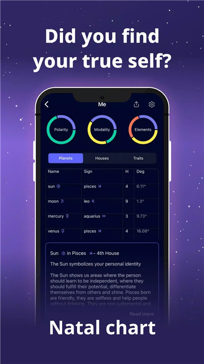 Nebula goes beyond just daily horoscopes by helping you explore your birth chart astrology. The app links your astrology to your natal chart, helping you understand your moon sign and the deeper aspects of your personality.