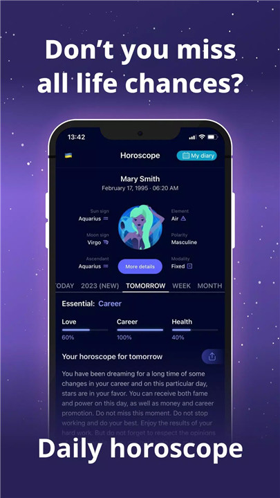 Nebula has a 98.3% accuracy rating and a 4.8-star rating from users. It provides highly accurate daily horoscopes, zodiac compatibility reports, and personalized astrology readings.