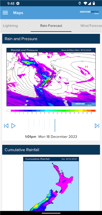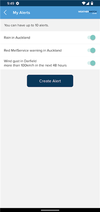 • Automatic delivery of MetService Warnings and Watches to your device.