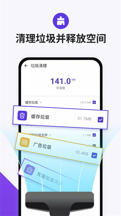 它可以清理应用缓存、下载文件、系统日志和无用的残留文件,释放更多存储空间。