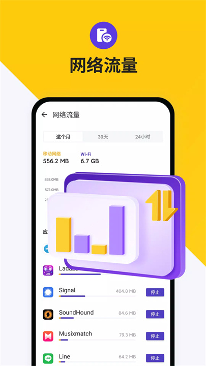 智能分析您的应用,识别过度消耗存储空间和移动数据的程序,让您随时掌控手机的资源。