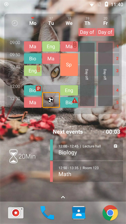 实时显示下一堂课的倒计时,让你随时掌握时间,准时到达。