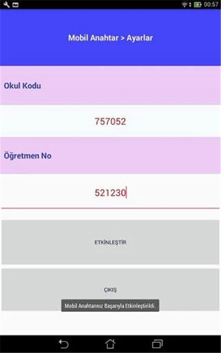 --> Uygulamayı kullanabilmek için aktivasyon bölümünden uygulamanın etkinleştirilmesi gerekiyor.