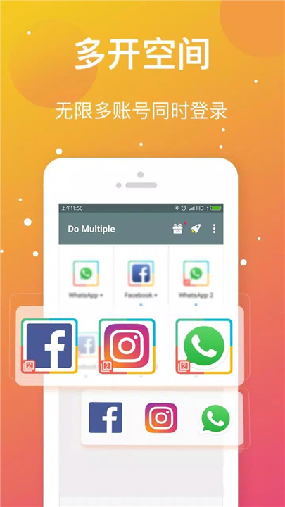多开大师便捷还能管理多个社交网络账户,使你轻松区分工作与私人生活,生活更加井然有序!