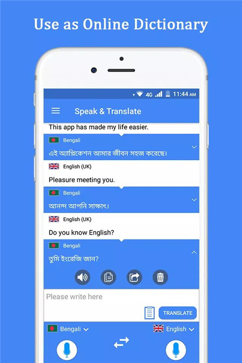 Given that English is the global language of communication, science, and technology, this app allows you to convert English phrases or words into other languages such as Chinese, Spanish, Arabic, Bengali, and many more. You can also reverse the translation, from any language back into English, facilitating easier learning and understanding of new languages.