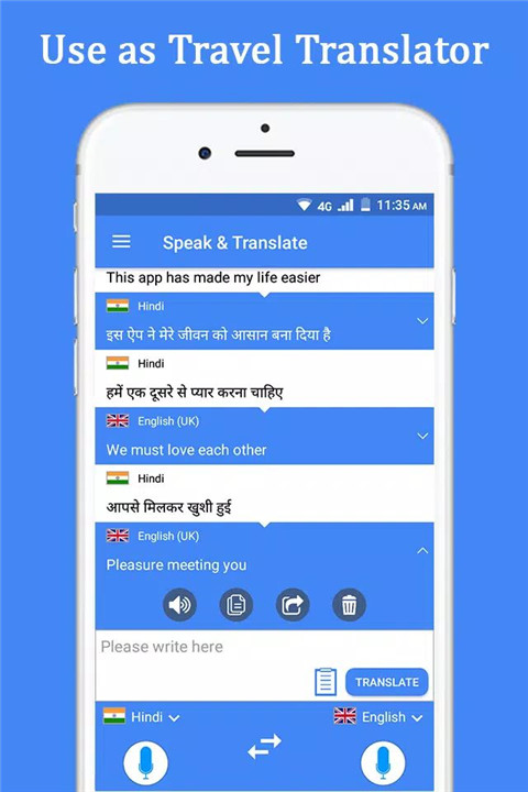 Simply tap on the microphone icon, speak your phrase or word, and the app will instantly translate it into the language of your choice.
