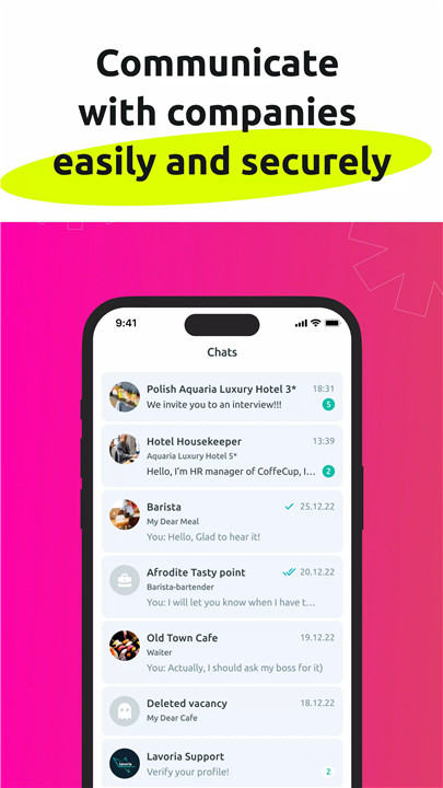 Apply directly by marking a job as “Interested” or starting a chat. Employers can also reach out to you first if your profile matches their needs. Always reply politely—even if you're not interested.