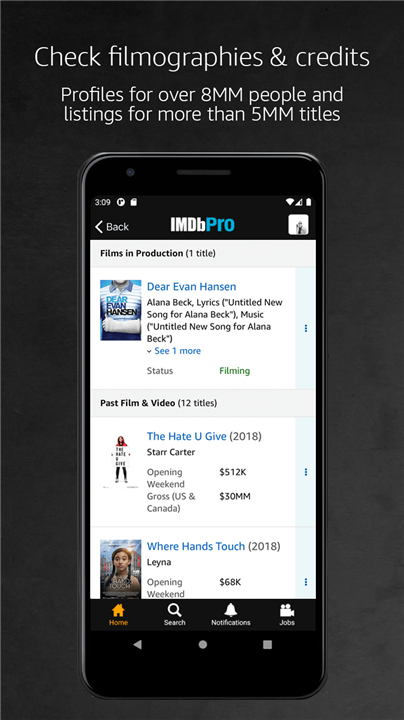 • The IMDbPro app now offers customized push notifications through IMDbPro Track, ensuring you never miss updates about the people and projects you follow.