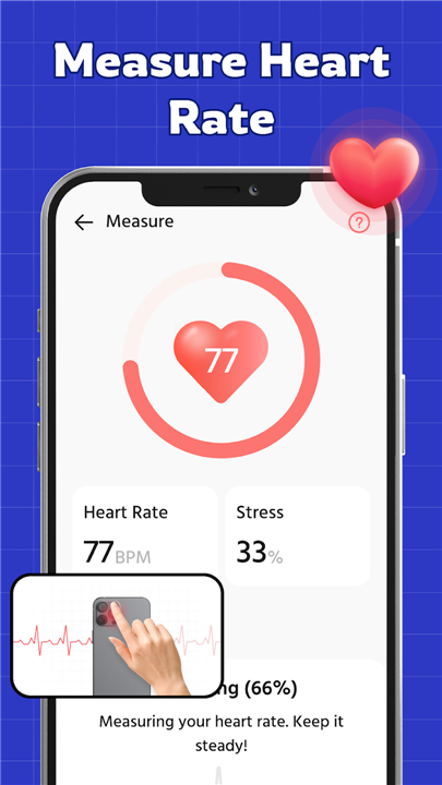 A: While the app does not directly measure heart rate, it allows you to manually input your pulse readings. You can check your heart rate using a smartwatch, fitness tracker, or any heart rate monitor, and then enter the data into the app for tracking.