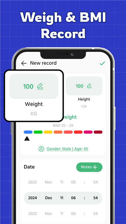 • Record and monitor important health indicators such as blood pressure, blood sugar levels, weight, and Body Mass Index (BMI).