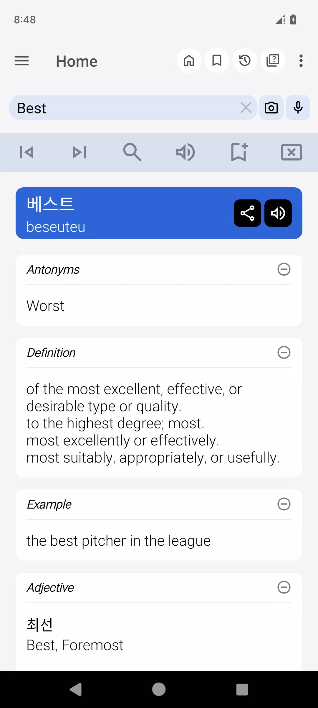 ★ Extensive Vocabulary: Access a vast database of words and phrases, including translations, definitions, pronunciations, and example sentences, ensuring that you have all the information you need to understand and communicate effectively in both languages.
