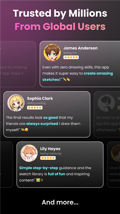 • Rated 4.5 stars by a global community of 50 million users, Sketchar is the most advanced and beloved camera-based drawing tool for everyone, from absolute beginners to seasoned artists.