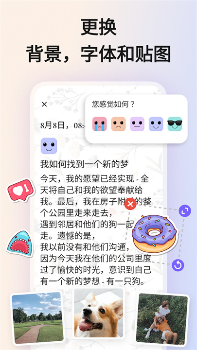 作为一本安全且私密的日记本,用户可以记录文字,还能添加照片,让每个记忆都更生动。