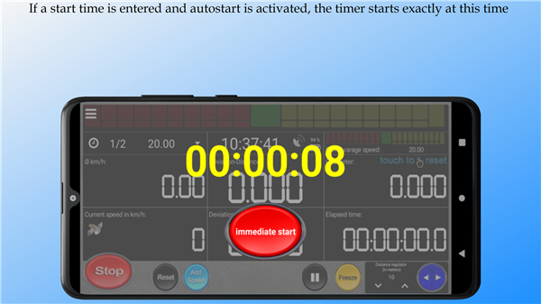 A: Inside the app you’ll notice the screen background toggles between three colors: green means you’re exactly on your preset average speed, yellow indicates you’re exceeding that speed, and red warns you that you’re too slow. This real-time feedback makes it easier to make quick adjustments without having to read numbers and interpret them under pressure.