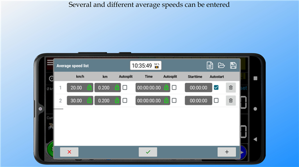 • Unlike simple numerical readouts, Speedpilot combines numeric speed data with a visual progress indicator, making it easier to immediately see whether you are on target, above, or below your intended average speed.