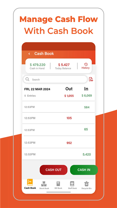 A: The CashBook allows you to record all your daily cash inflows and outflows effortlessly. It provides real-time summaries and cash reports, helping you maintain accurate records and make informed financial decisions.