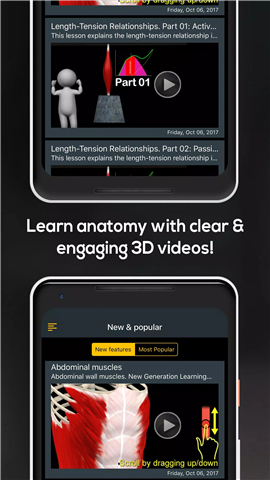 Anatomy by Muscle & Motion uses high-quality human muscle anatomy videos and detailed graphic explanations to help users gain an in-depth understanding of human anatomical muscles, dynamic bone medicine and sports anatomy atlas.