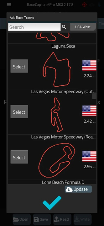 • Step 3: Launch the Race Capture app. When prompted, select 'yes' to update race tracks.
