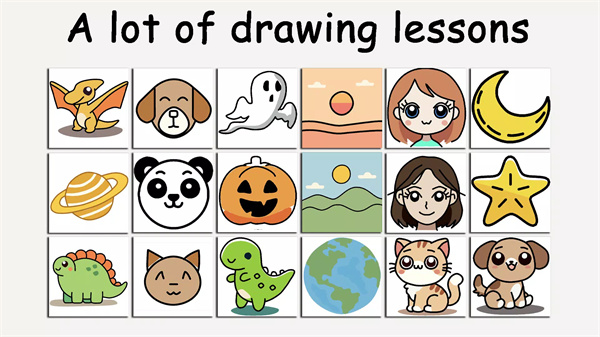 通过精心设计的课程,ArtCanvas带领您从基础到复杂的艺术创作,逐步提高您的绘画水平。应用中包含了多种艺术风格和技巧,帮助您掌握从日常物品到复杂设计的绘制方法。您将能够自由创作,并探索各种绘画风格,从素描到漫画、动漫等,尽情释放您的艺术创造力。