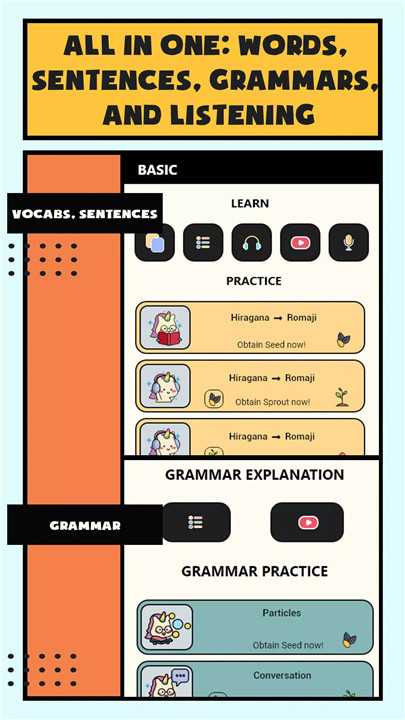 Experience rapid learning through illustrated flashcards that make memorization fun and efficient. Dive into basic Japanese vocabulary and concepts with ease.