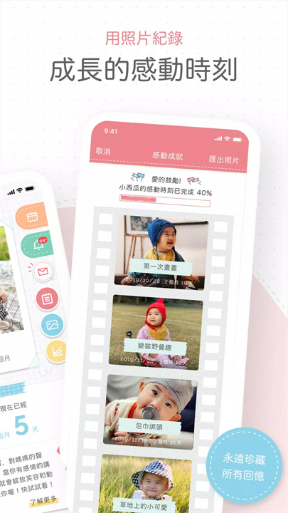 宝宝的每个笑容、每次成长,都是珍贵的瞬间。通过上传照片和日记,记录下这些“感动时刻”,还可以把宝宝的照片放到首页,随时提醒自己宝宝有多可爱!
