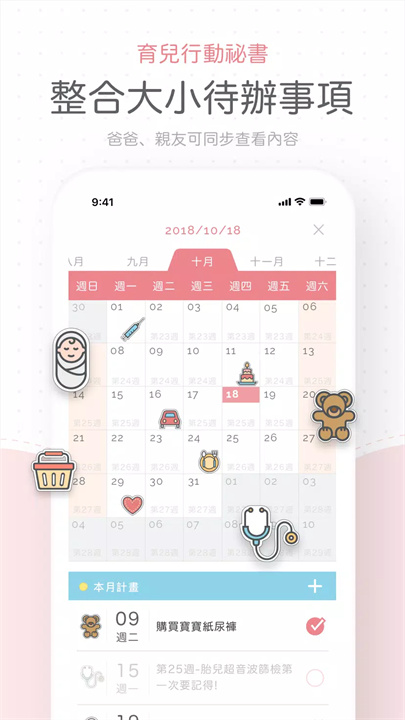 用行事历记下待办事项,设置提醒功能,让你事事有条不紊。再也不用担心忘记重要约会或产检,随时掌控一切!