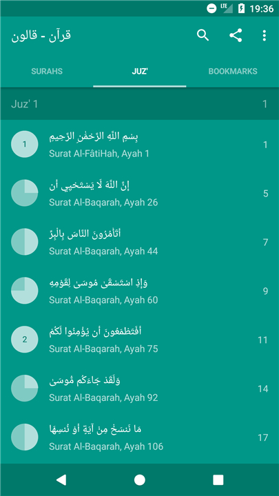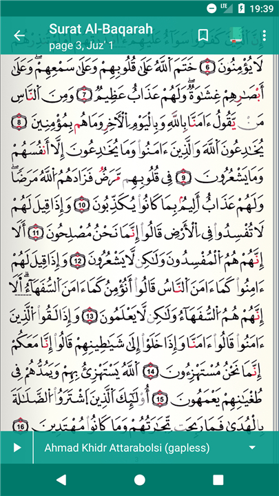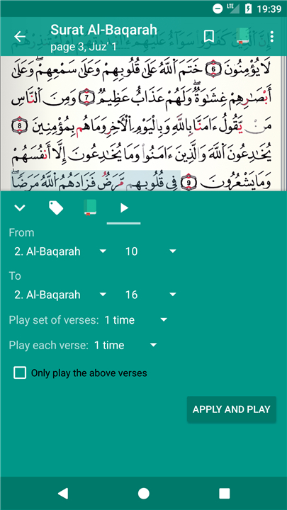 • Verse-by-verse repeat function to aid memorization and correct pronunciation.