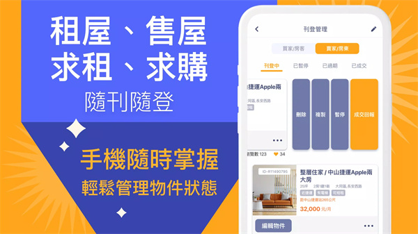 房东可以随时管理自己发布的房源信息,轻松出租、出售还是求租、求购,都能轻松更新物件状态,确保信息时刻准确。